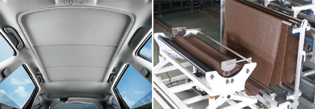 適用于汽車天窗卷陽簾面料,復(fù)合皮革,海綿,尼龍網(wǎng)布等。
