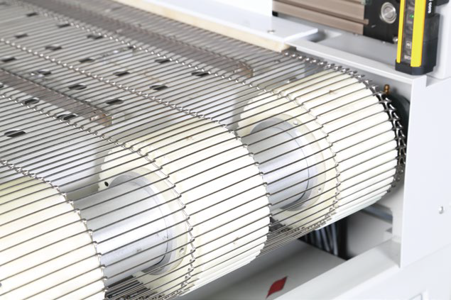 5、全自動送料架,與履帶工作平臺配合使用,防止面料偏斜。